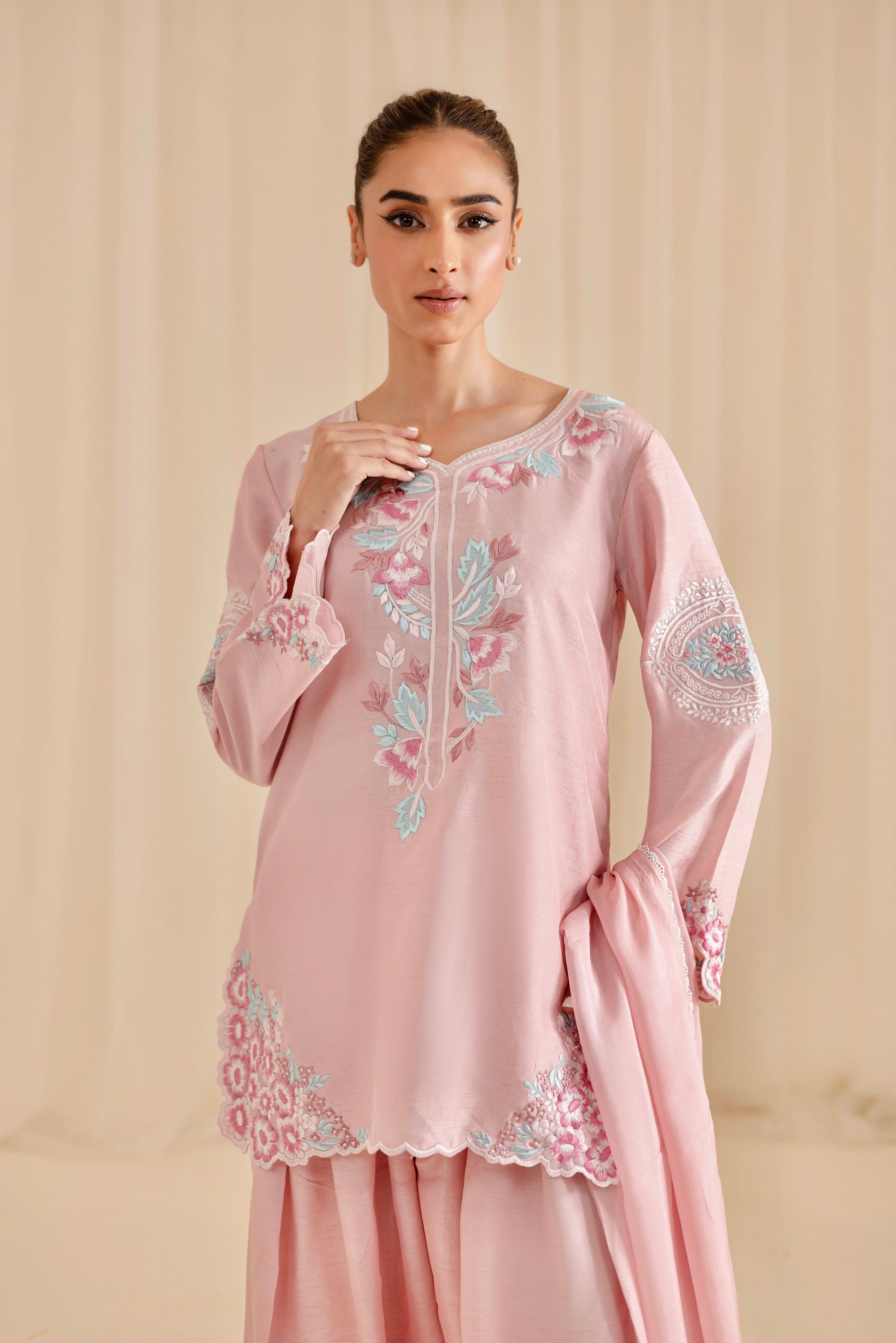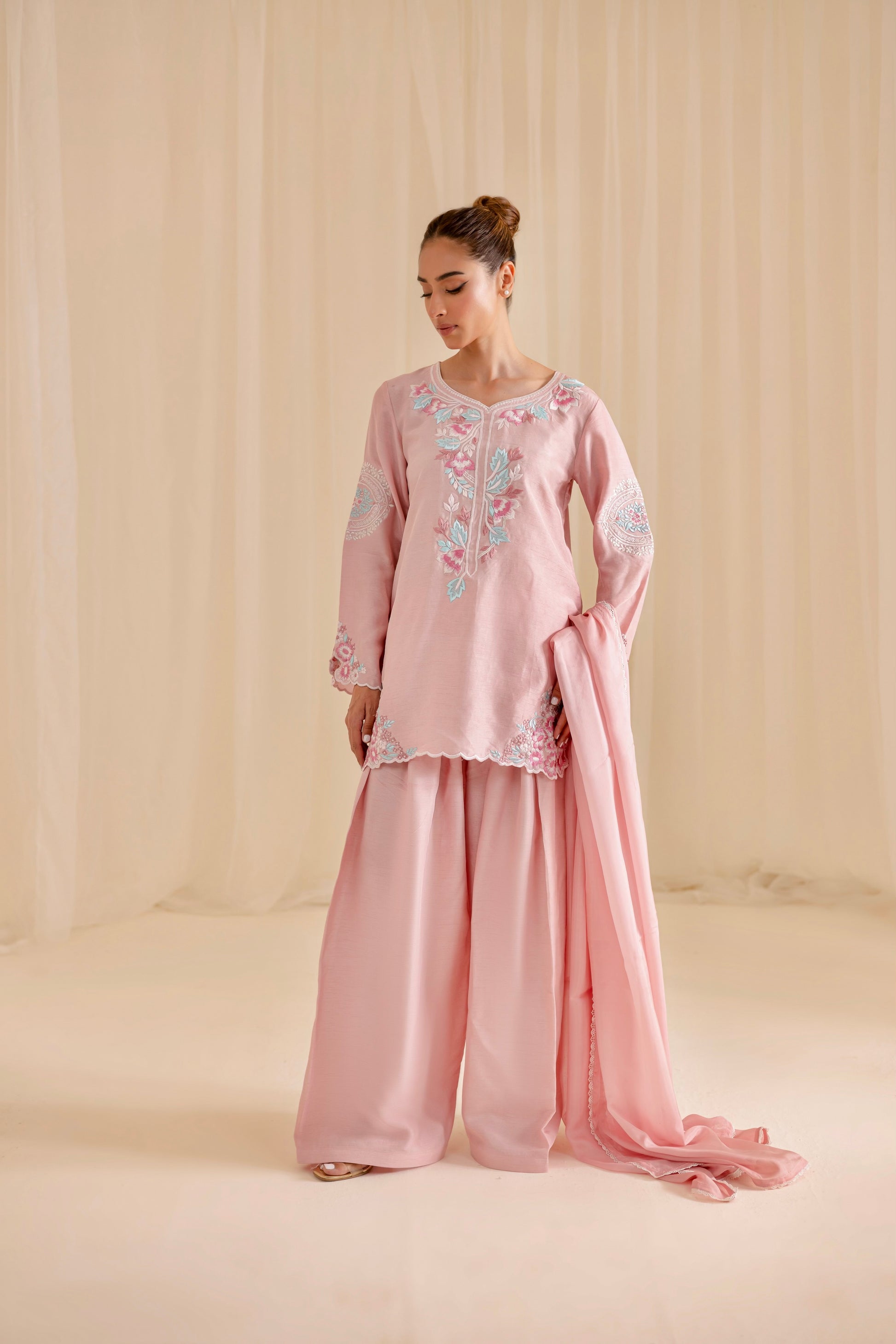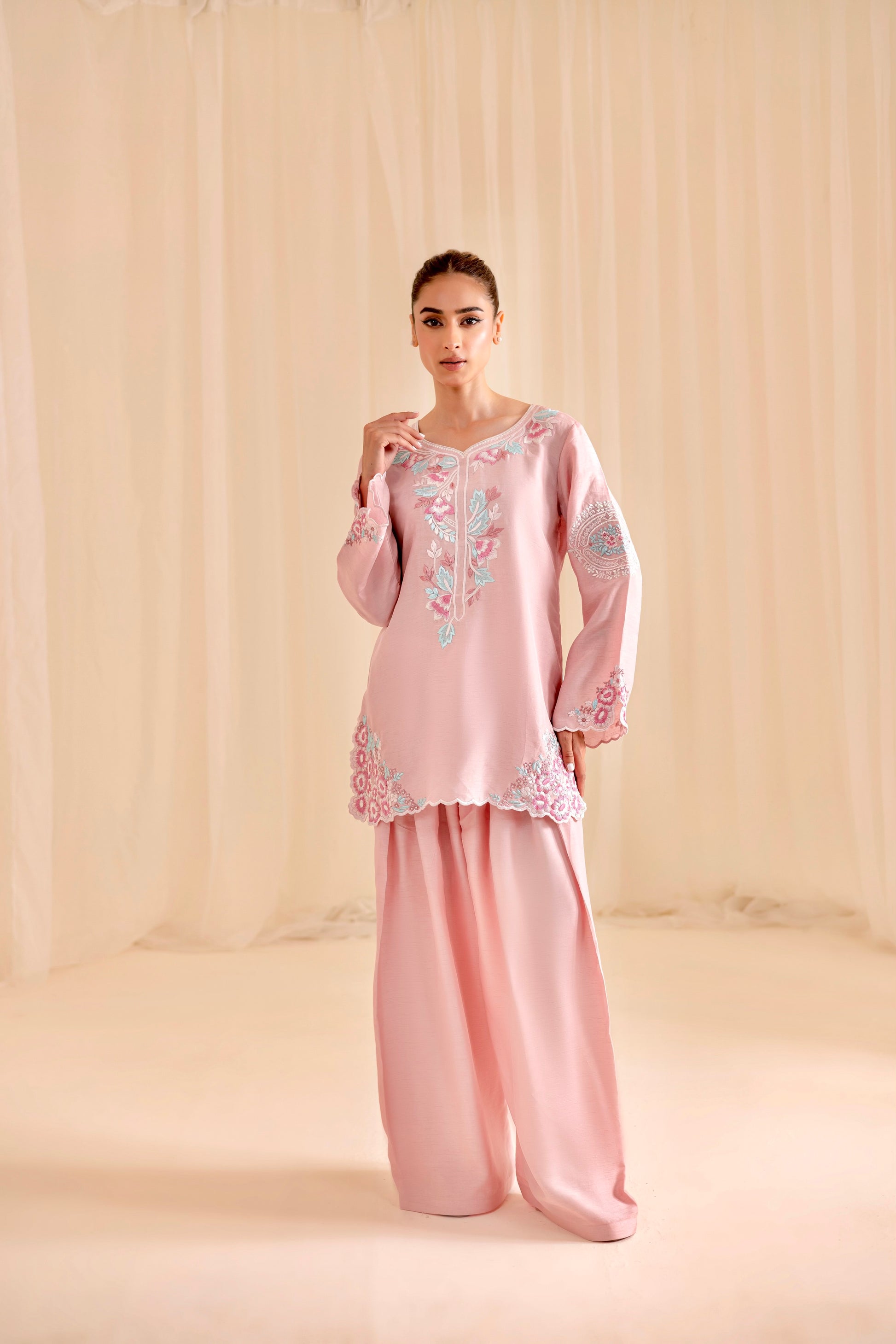 Fresh, floral and effortlessly chic, The Posy Set is the outfit you need this summer. Featuring delicate floral blooms all over the front of the shirt on a canvas of dreamiest shade of pastel pink in the trendiest cut of the season, The Posy Set has it all.