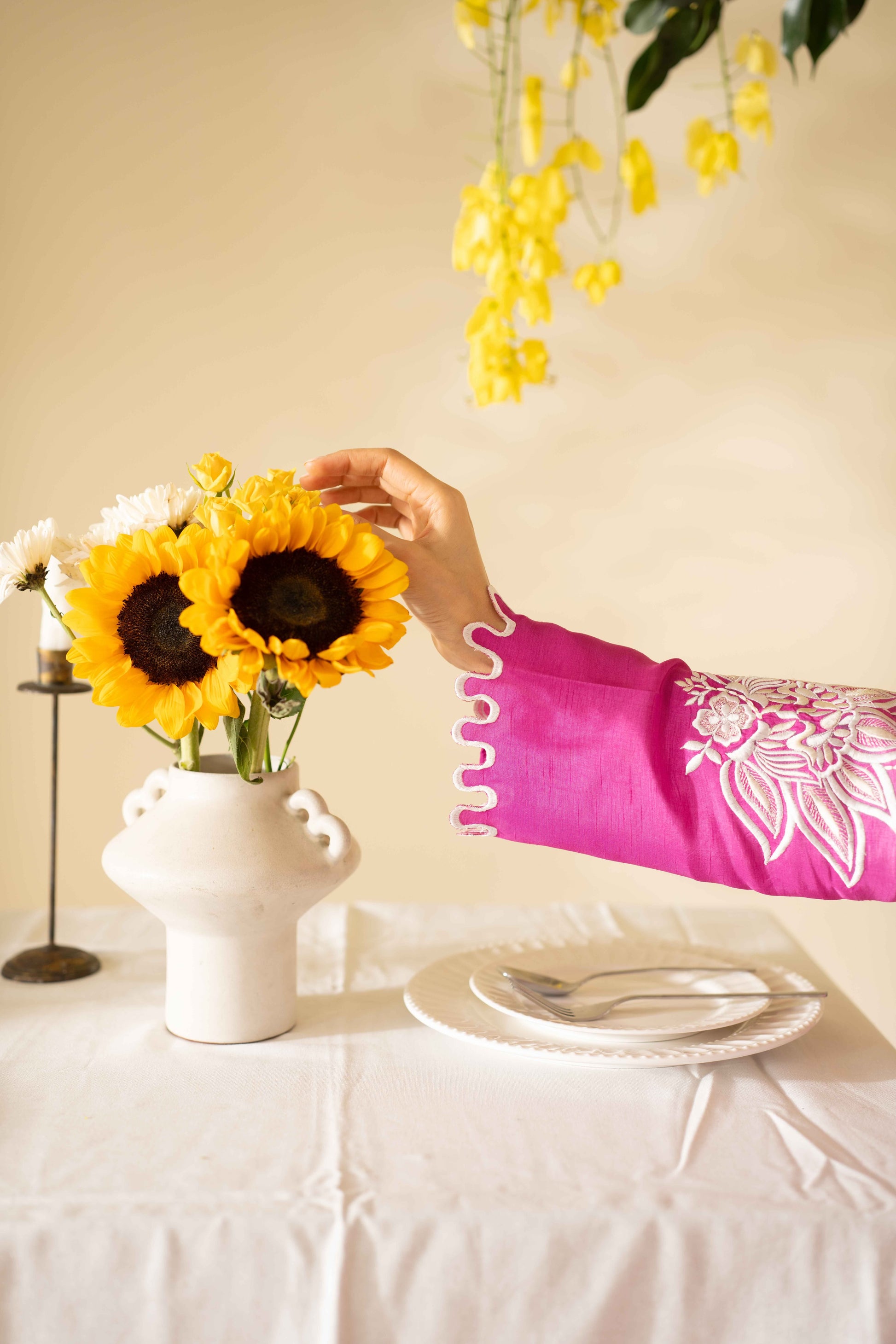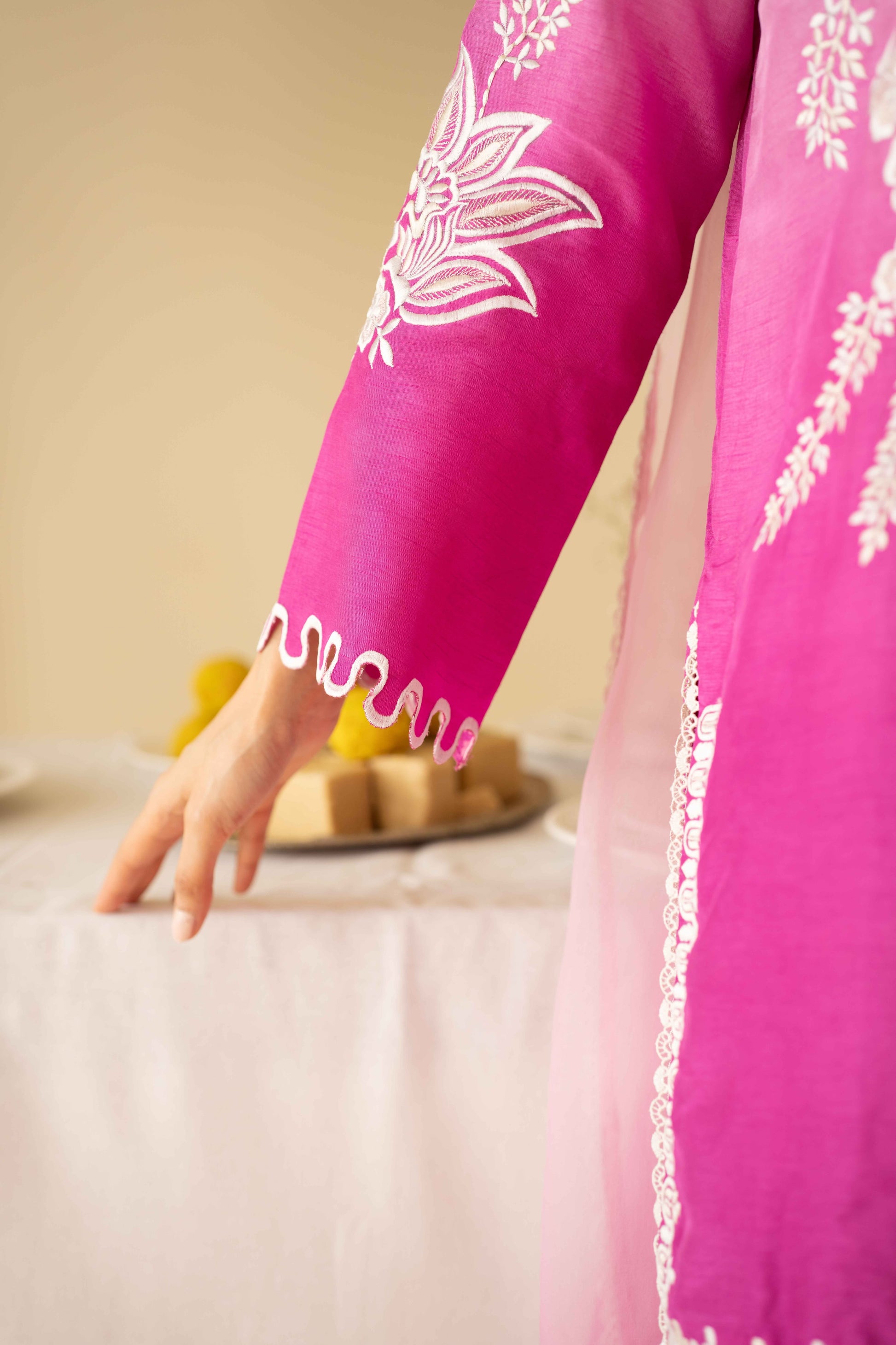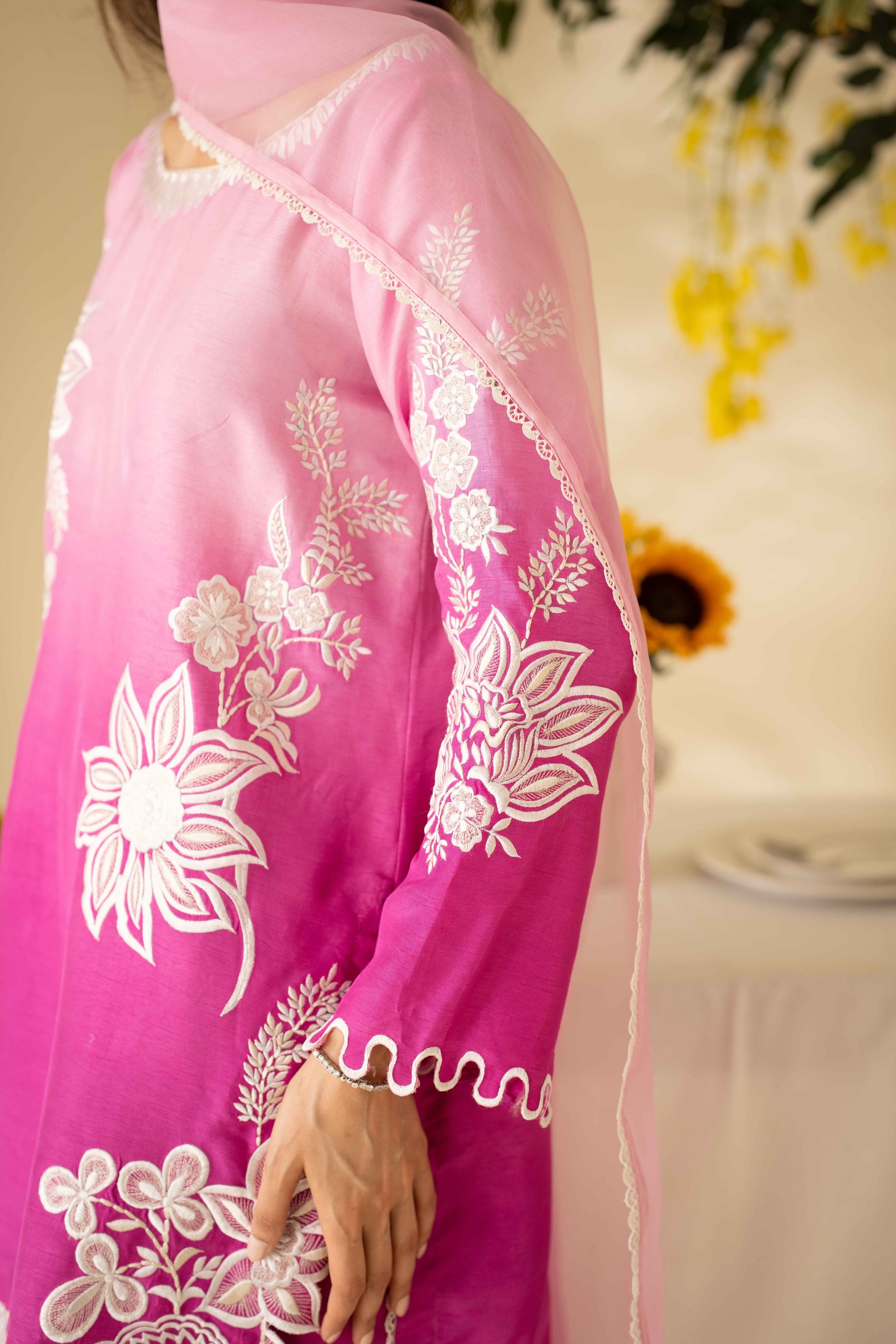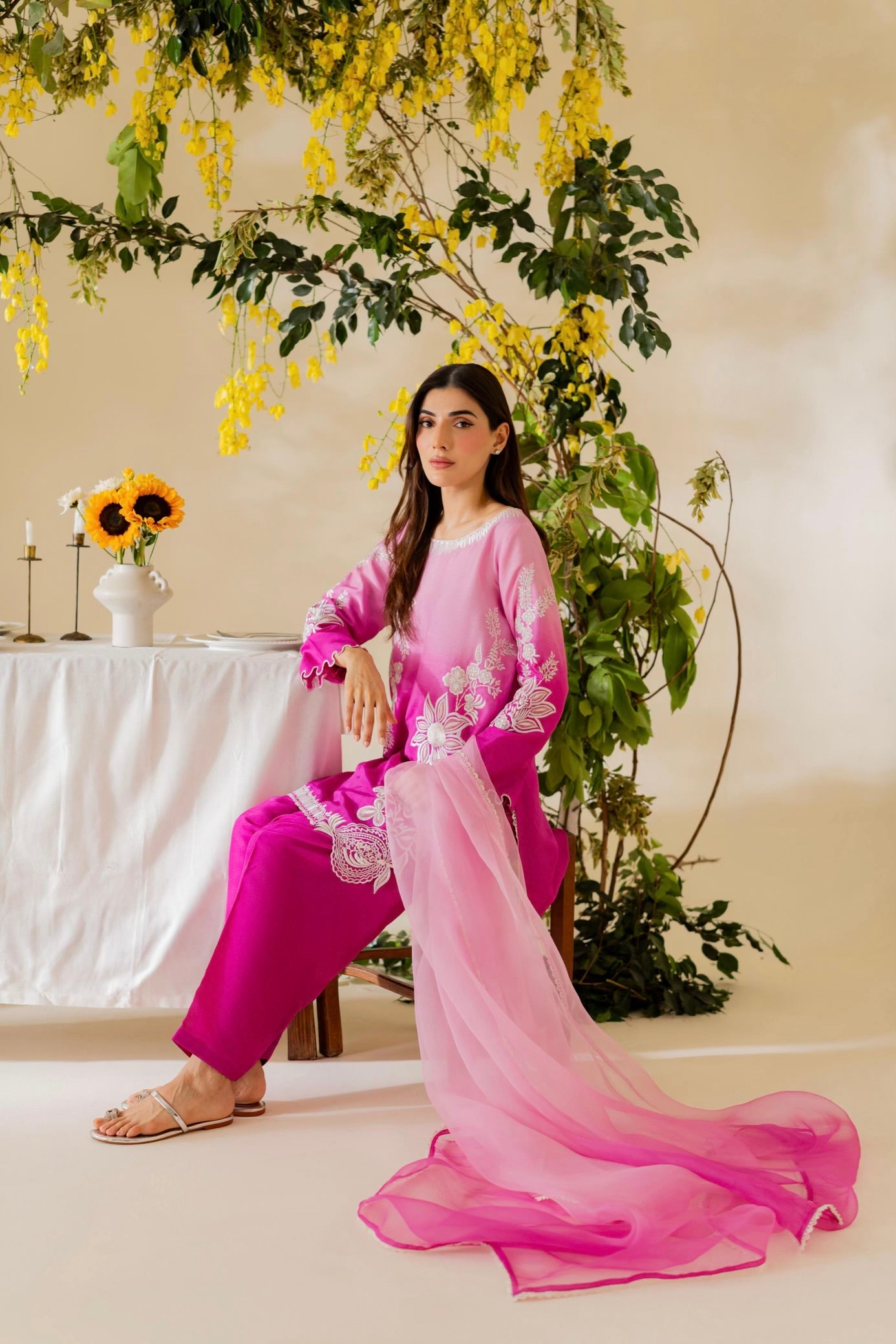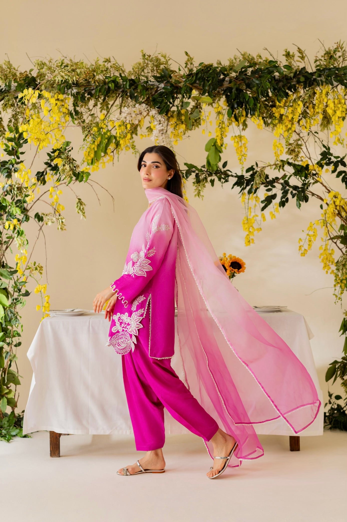 Presenting “Cotton Candy”- pretty, playful and all things pink! A two toned ombre ensemble layered with embroidery all over in the softest candy pink hues paired with a skinny shalwar and a matching two toned organza duppatta, “Candy Pink” is the dreamiest pick of season.