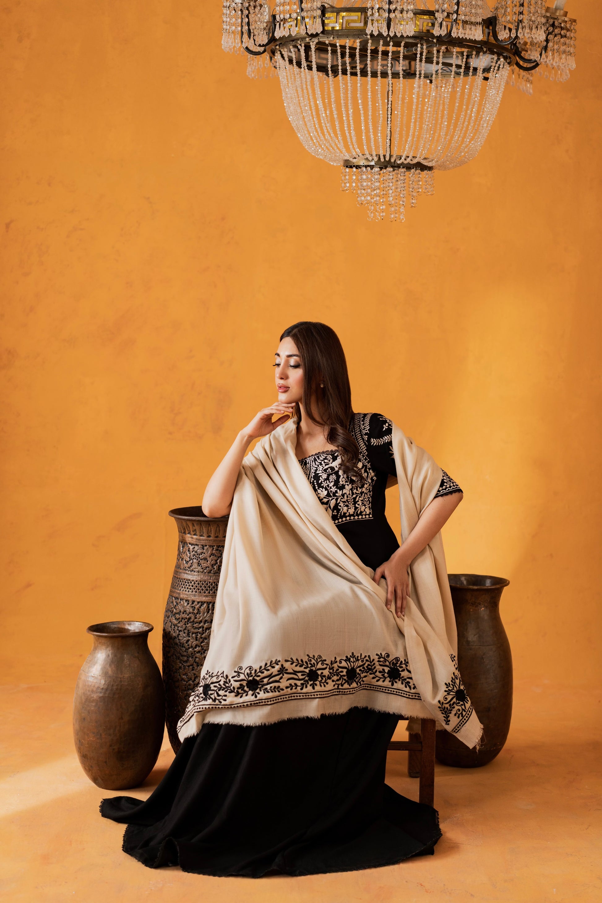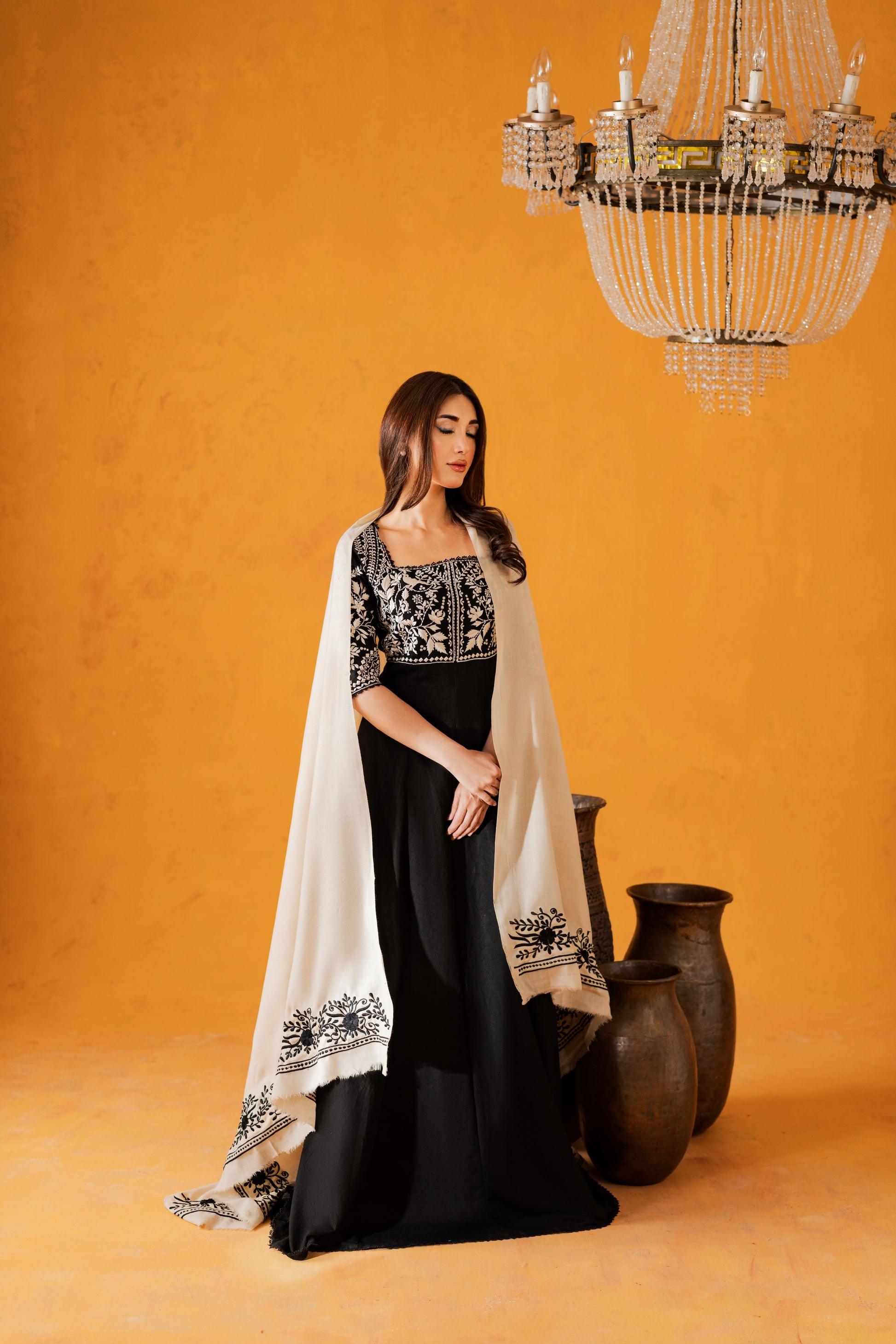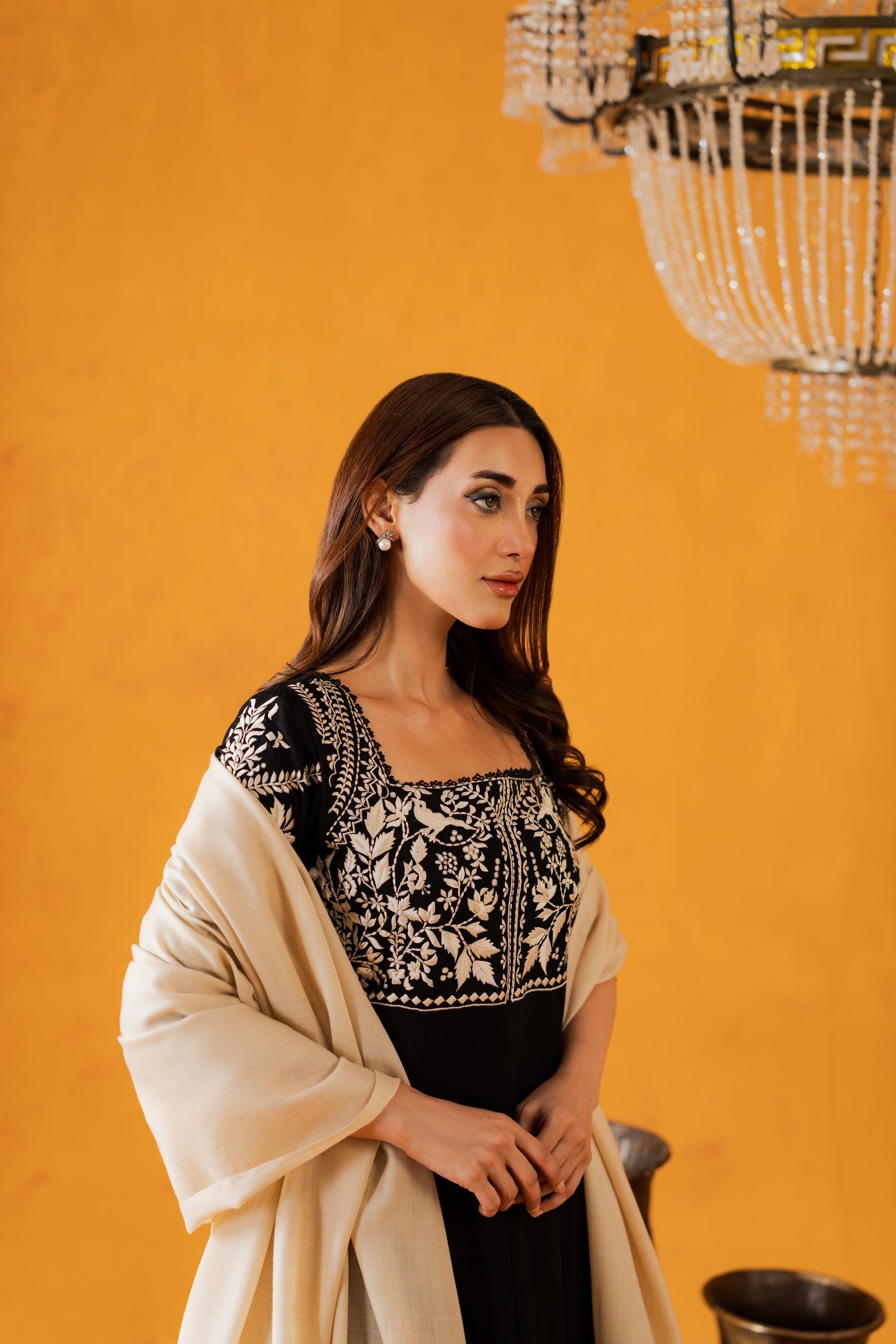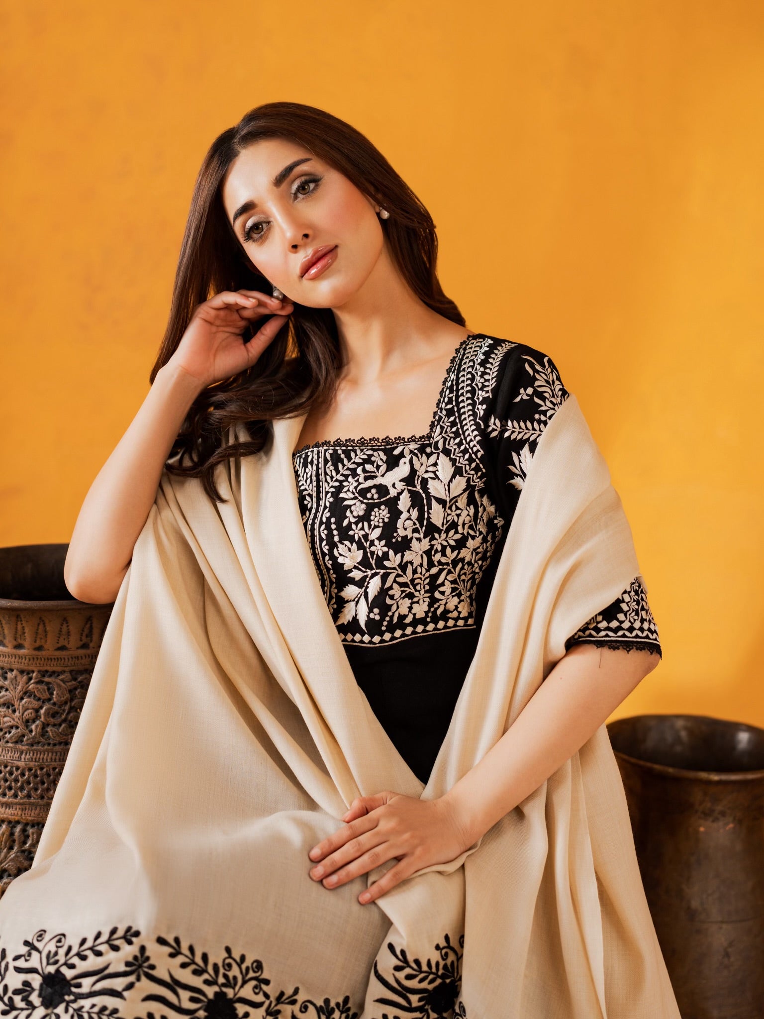 Fall Pret never looked so good. Introducing “Lyrah”- A fully embroidered front, the dreamiest neckline, and a contrasting woolen shawl that wraps you in warmth and elegance — Lyrah is everything your winter wardrobe has been waiting for.
