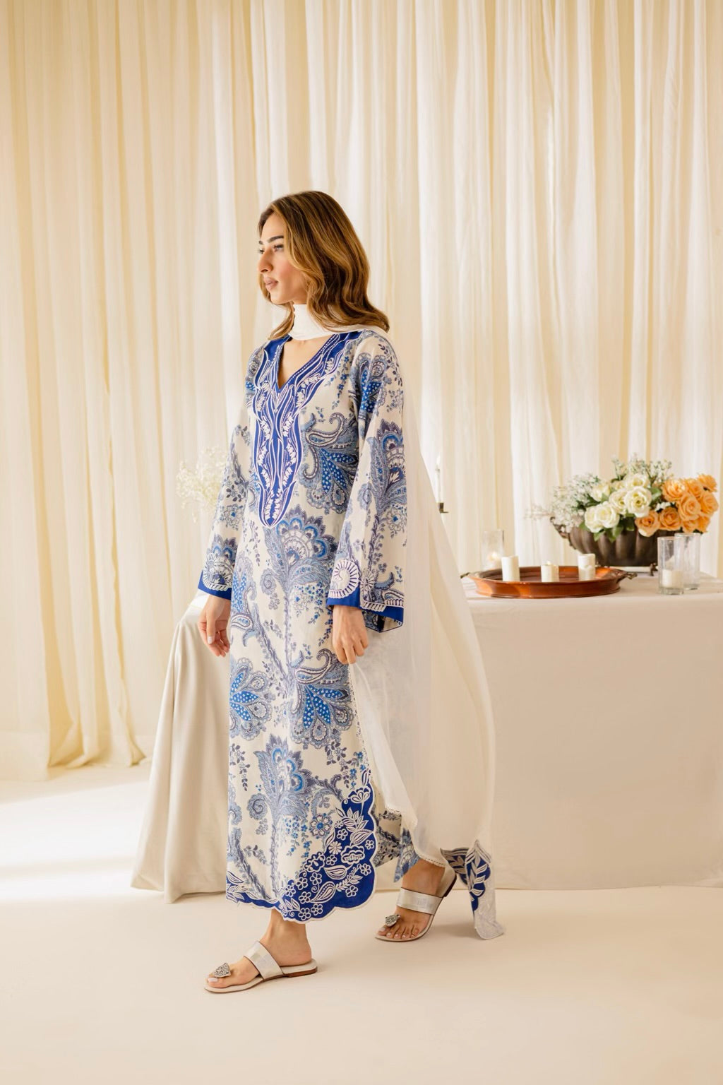 Our most sought-after signature SA prints are here just in time for Eid! Presenting“The Mila Set”- a vibrant print, stellar color combination, a relaxed silhouette and striking patch work embroidery.