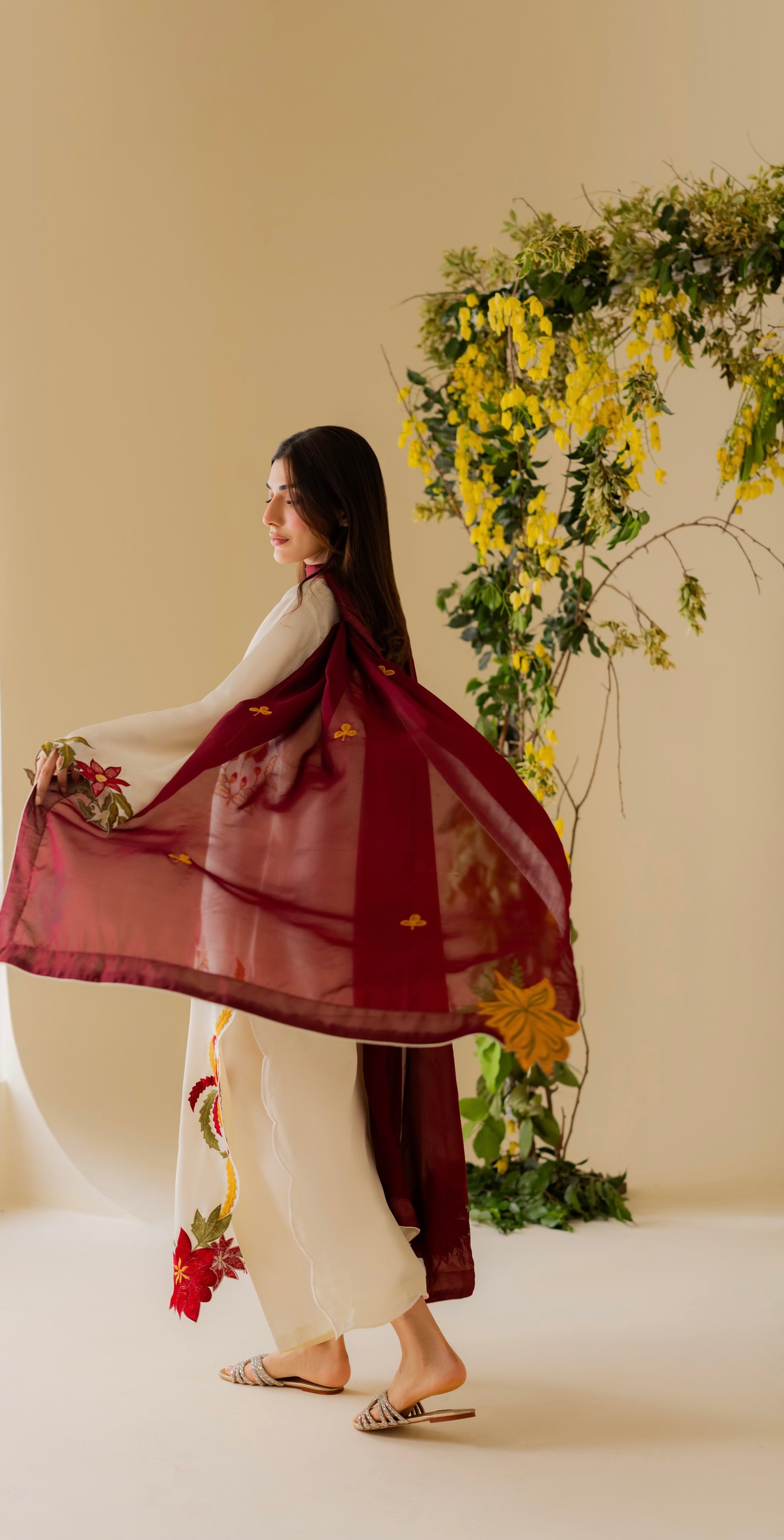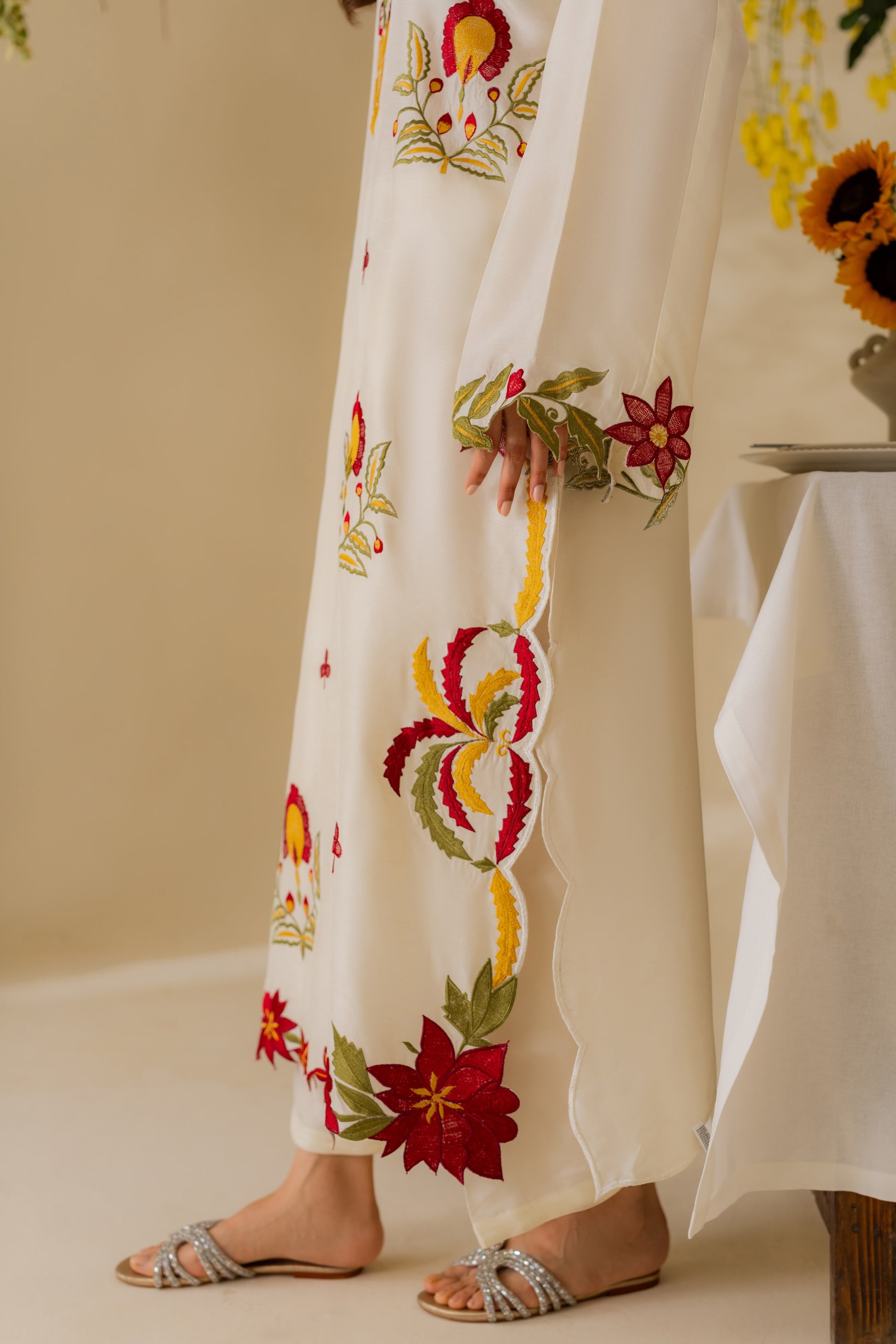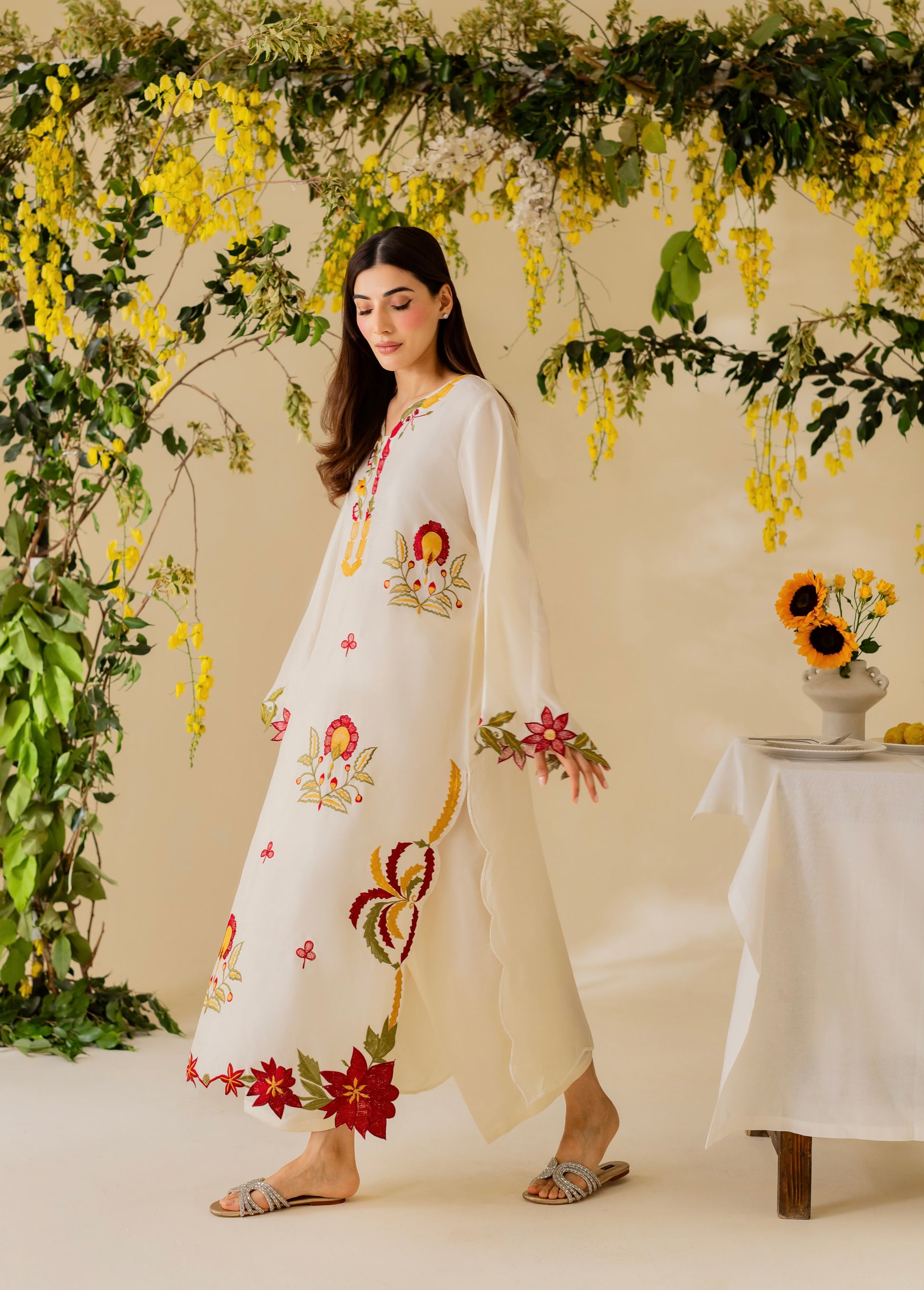 The bright florals are ready for your spring/ summer wardrobe! Bold, bright and everything right- “The Tia Set” is the ultimate summer staple this Eid season. With its flowy silhouette and vibrant cutwork embroidery layered on a creamy base, “The Tia Set” is definitely not to be missed.
